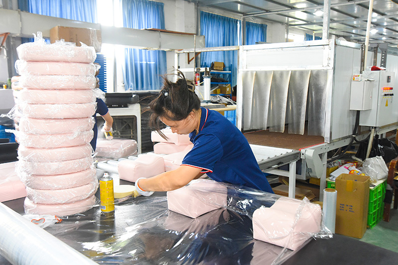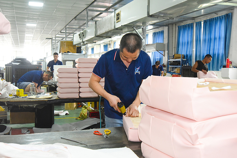 Nagtatampok ang sofa workshop ng kumpletong daloy ng pagpoproseso ng upholstery, na nagbibigay-daan sa pinagsama-samang pagmamanupaktura mula sa mga bahagi ng istruktura hanggang sa balat sa ibabaw, na tinitiyak ang matatag na kalidad at pinag-isang detalye sa bawat produkto.